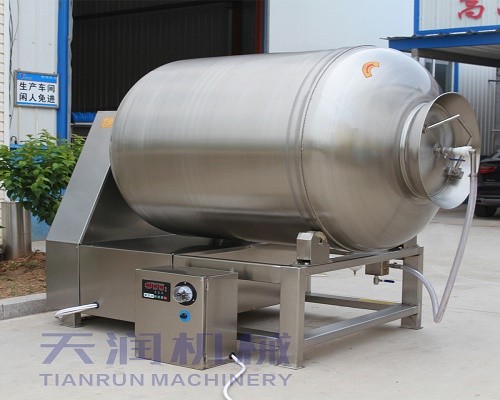 肉類制品的腌制和原料在真空狀態下混合的專用設備,通過真空作用可以將塊狀肉的纖維組織拉張疏松,使常壓腌制變為負壓腌制,通過轉動摔打,使靜態腌制為動態腌制,在恒定的溫度條件下,使自然腌制變為強化腌制,提高了工作效率。
