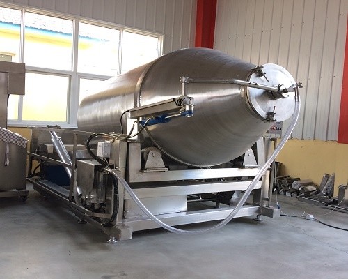 全自動(dòng)真空滾揉機(jī)液壓升降 工作原理:真空滾揉機(jī)是利用物理沖擊原理,讓物料在桶內(nèi)上下翻,撞擊,摔打,起到按摩腌漬的作用,真空滾揉機(jī)一般和鹽水注射機(jī)搭配使用。 適用范圍:適用于肉塊或者整雞,整鴨或大塊肉類,為了在負(fù)壓