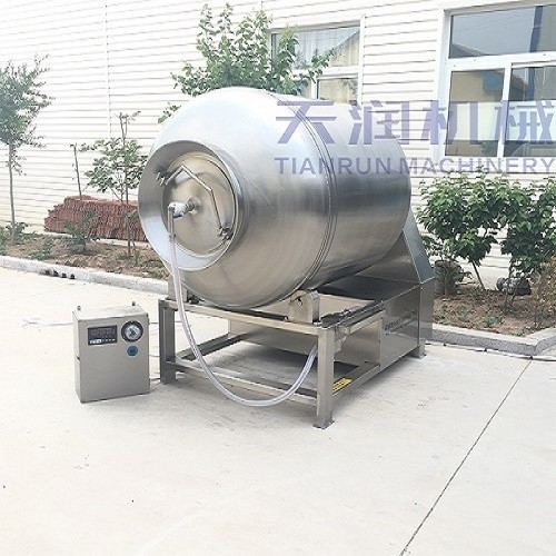是在真空狀態(tài)下,利用物理沖擊原理,讓肉塊或肉餡在滾筒內上下翻動,相互摔打從而達到按摩,腌漬作用。